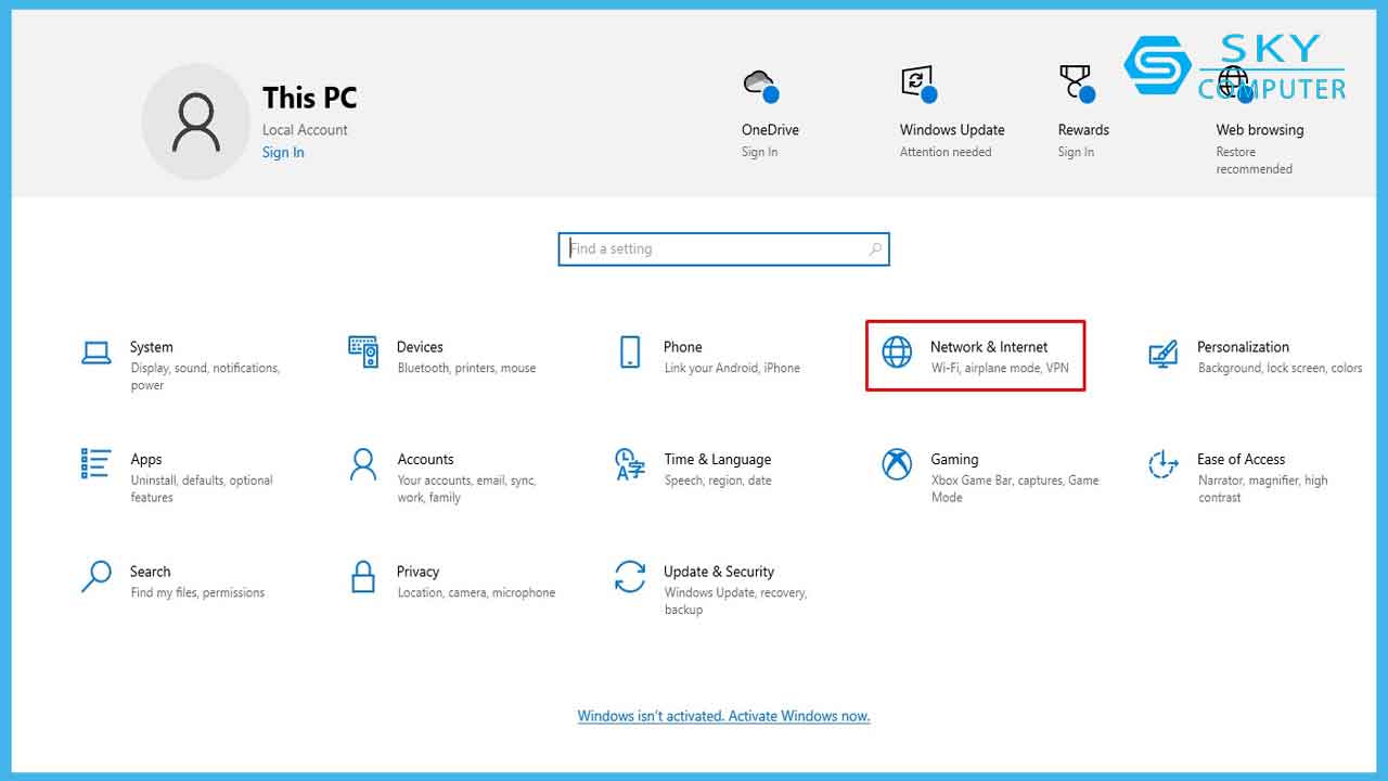 Chọn Network & Internet