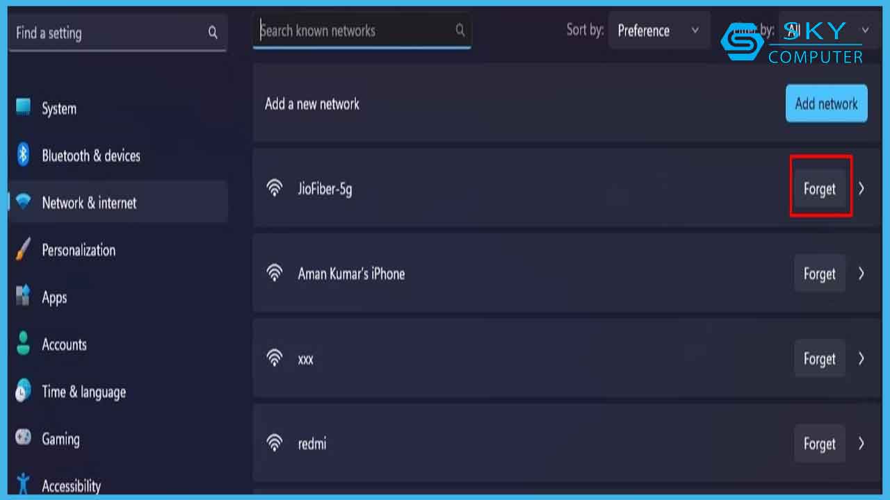 Thông báo lỗi có thể xảy ra do cấu hình mạng bị hỏng trên máy tính của bạn. Trong trường hợp này, bạn sẽ phải quên mạng không dây, thao tác này sẽ xóa các cài đặt mạng đã lưu. Bạn thực hiện như sau:
