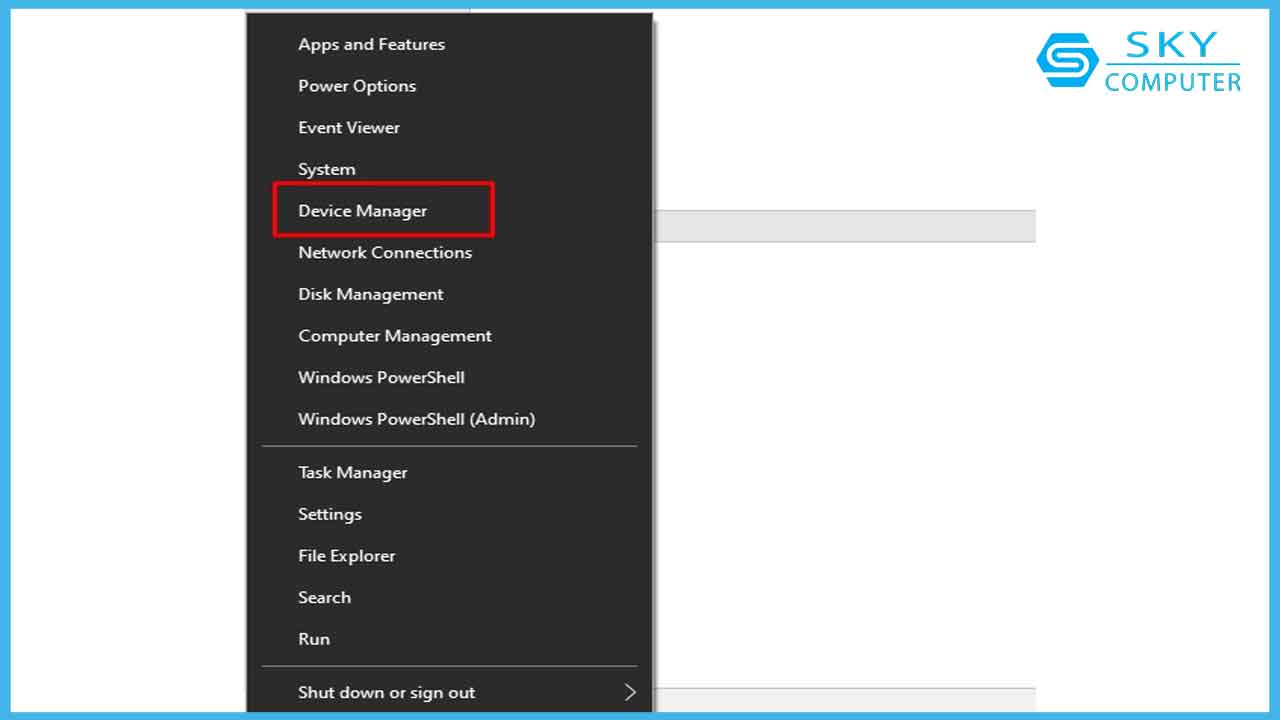- Nhấn phím nóng Win + X và chọn Device Manager (Trình quản lý thiết bị) từ menu xuất hiện.