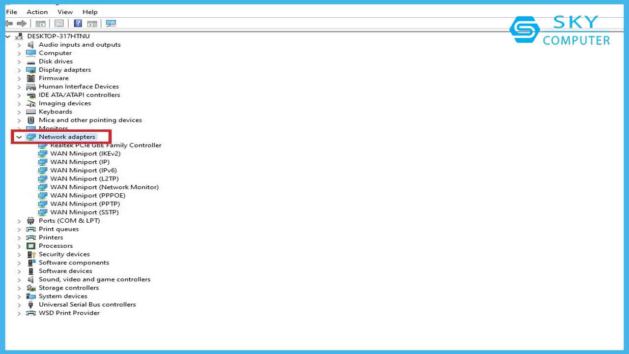 - Mở rộng nút Network adapters (Bộ điều hợp mạng).