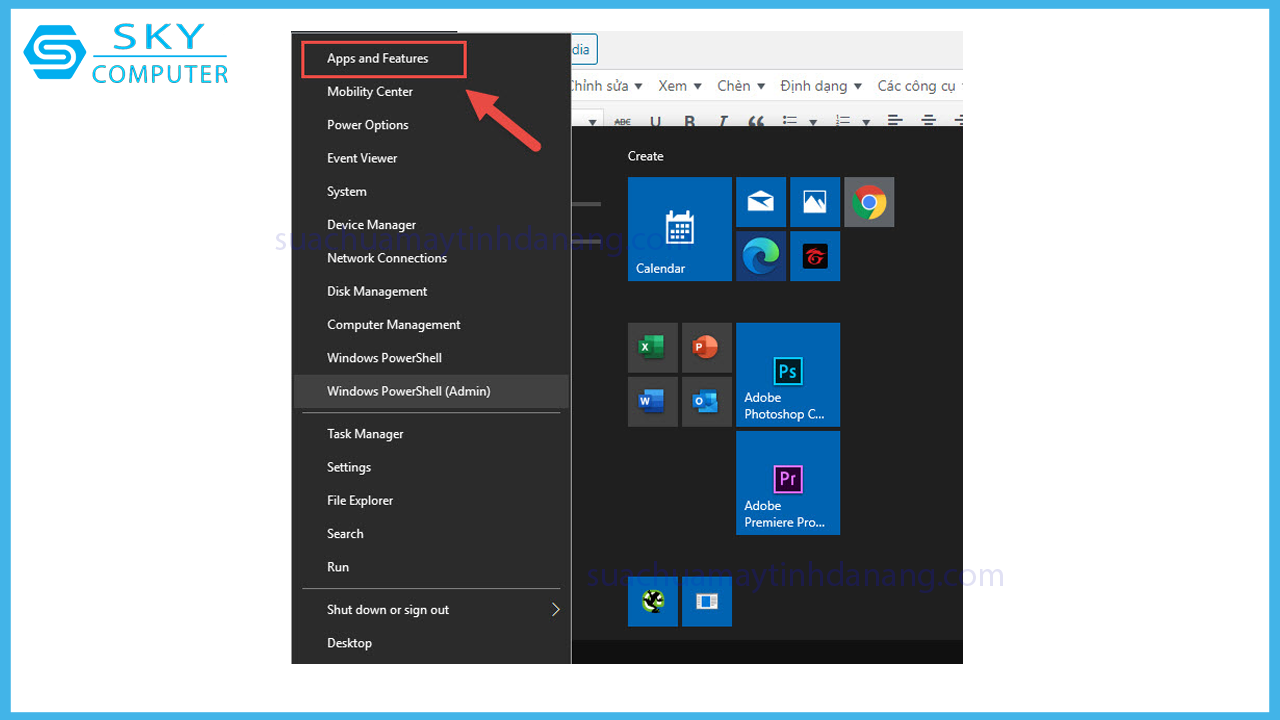 Bước 1: Đầu tiên, nhấp chuột phải vào biểu tượng Start Menu, chọn ứng dụng và tính năng (App and Features).
