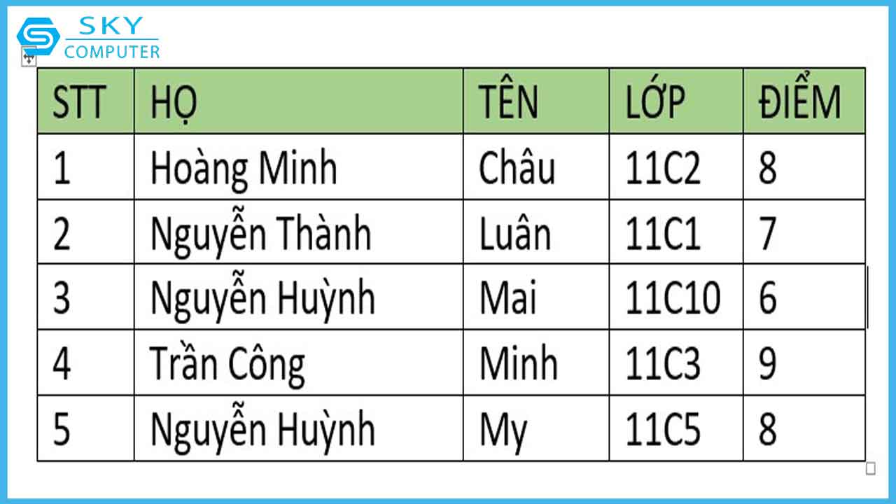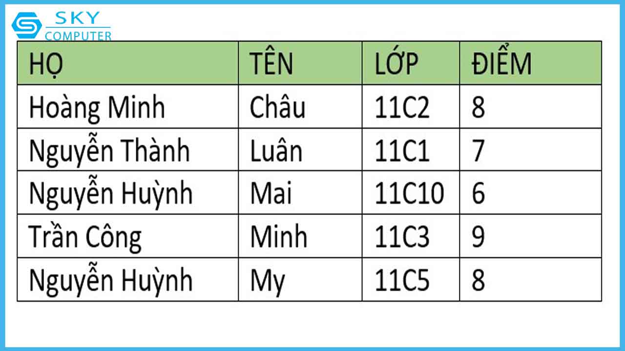 IV. Cách sắp xếp tên theo ABC trong bảng có số thứ tự