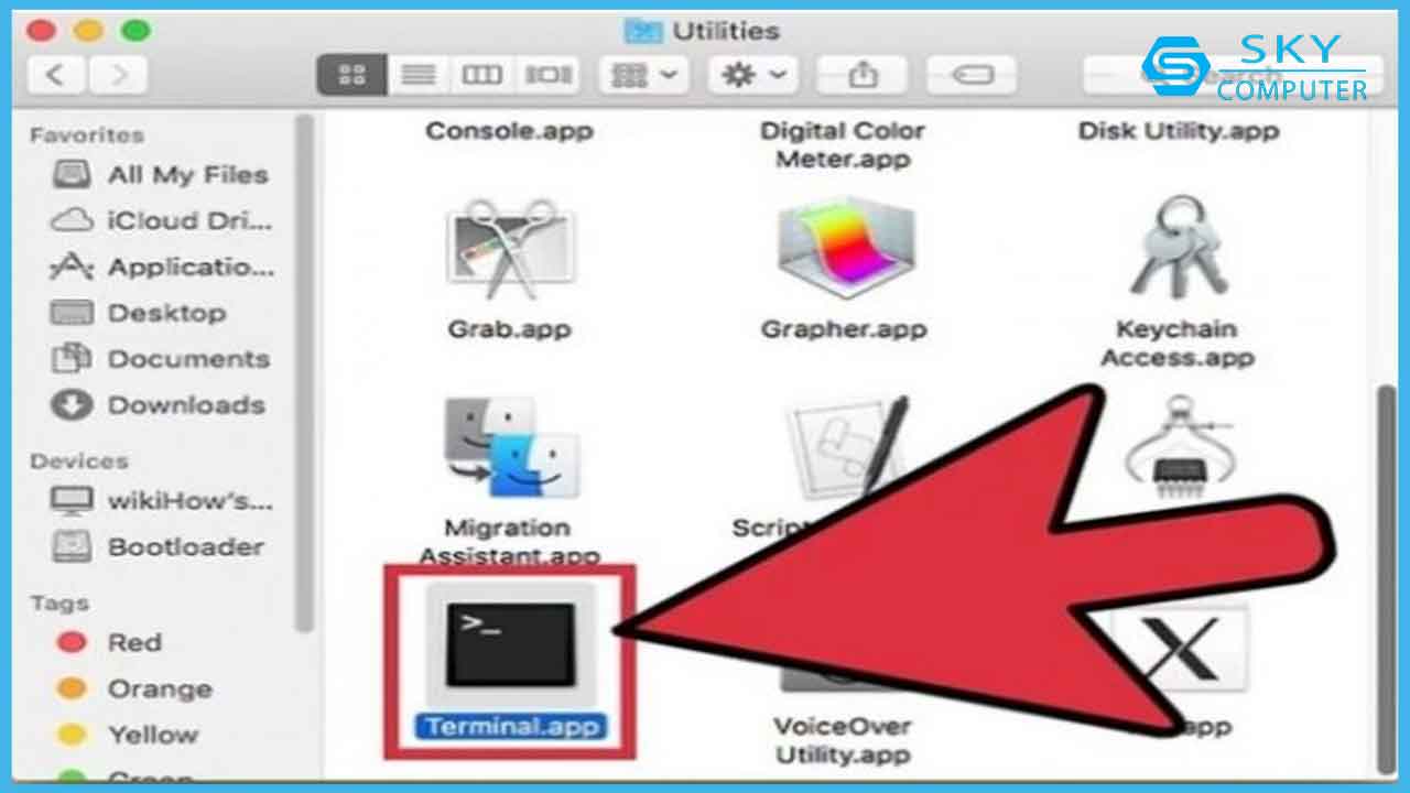 Bước 1: Mở Terminal bằng cách nhấn tổ hợp phím ⌘ + Spacebar hoặc gõ “Terminal” trong ô Spotlight. Bạn có thể tìm thấy và mở Terminal trong mục Menu Utilities.