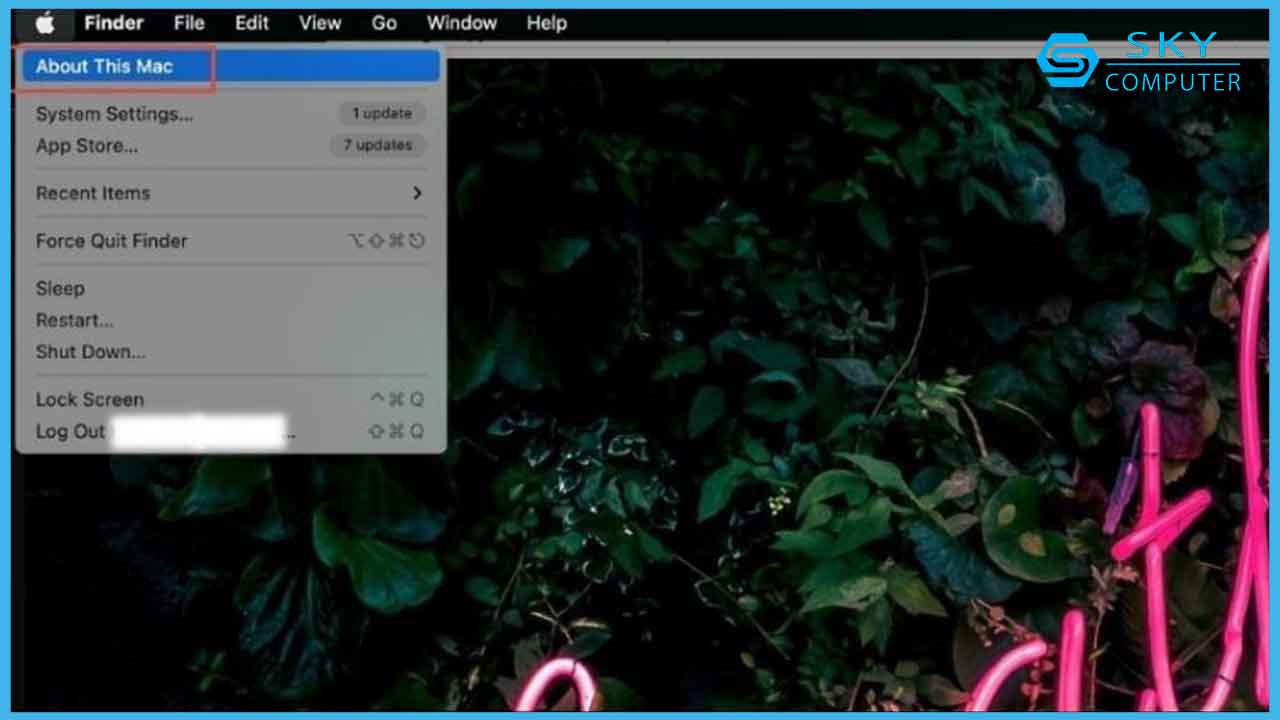 Bước 1: Nhấp vào logo quả táo Apple bên góc trái màn hình, tiếp theo tìm đến mục About This Mac trong thanh Menu.