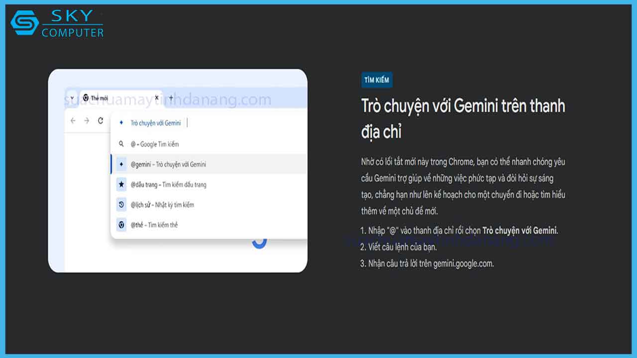 Chưa hết, Google còn bổ sung một tính năng AI khác cho Chrome, đó là khả năng trò chuyện với Gemini trên thanh địa chỉ. Nhờ đó mà bạn có thể nhanh chóng yêu cầu Gemini trợ giúp về những việc phức tạp và đòi hỏi sự sáng tạo, chẳng hạn như lên kế hoạch cho một chuyến đi hoặc tìm hiểu một chủ đề mới.