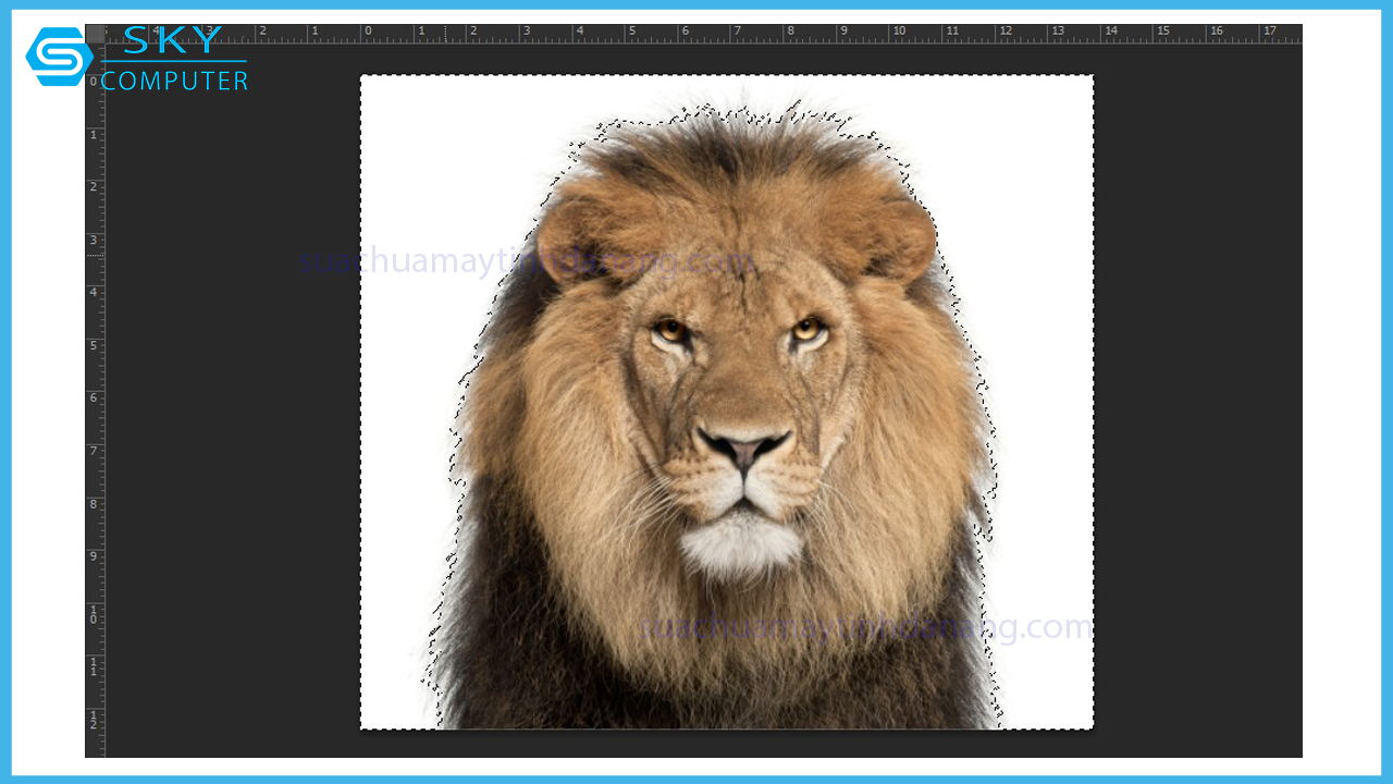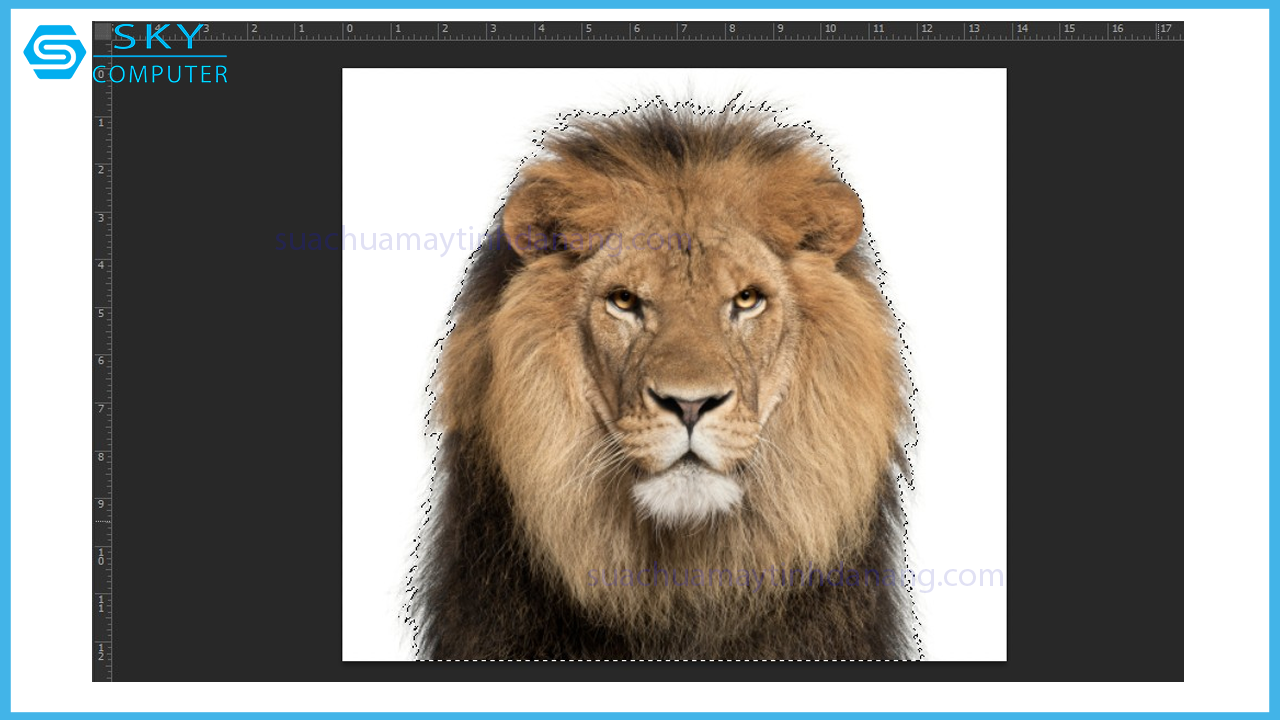Bước 3: Lúc này, bạn có thể dùng phím tắt Ctrl+X để loại bỏ vùng đã chọn đi và chỉ còn lại hình con sư tử: