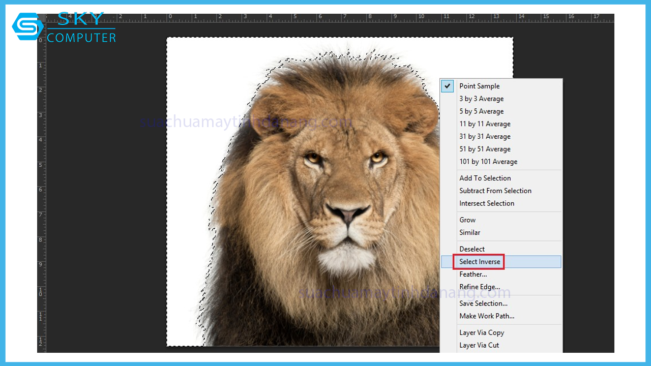 Như vậy vùng chọn (nét kiến bò) đã được đảo sang con sư tử và bao quanh đối tượng hoàn toàn
