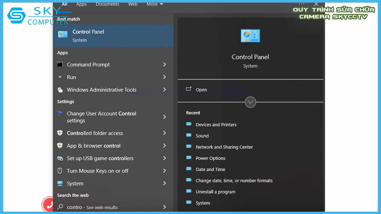 - Bước 1: Mở Start Menu và tìm Control Panel.