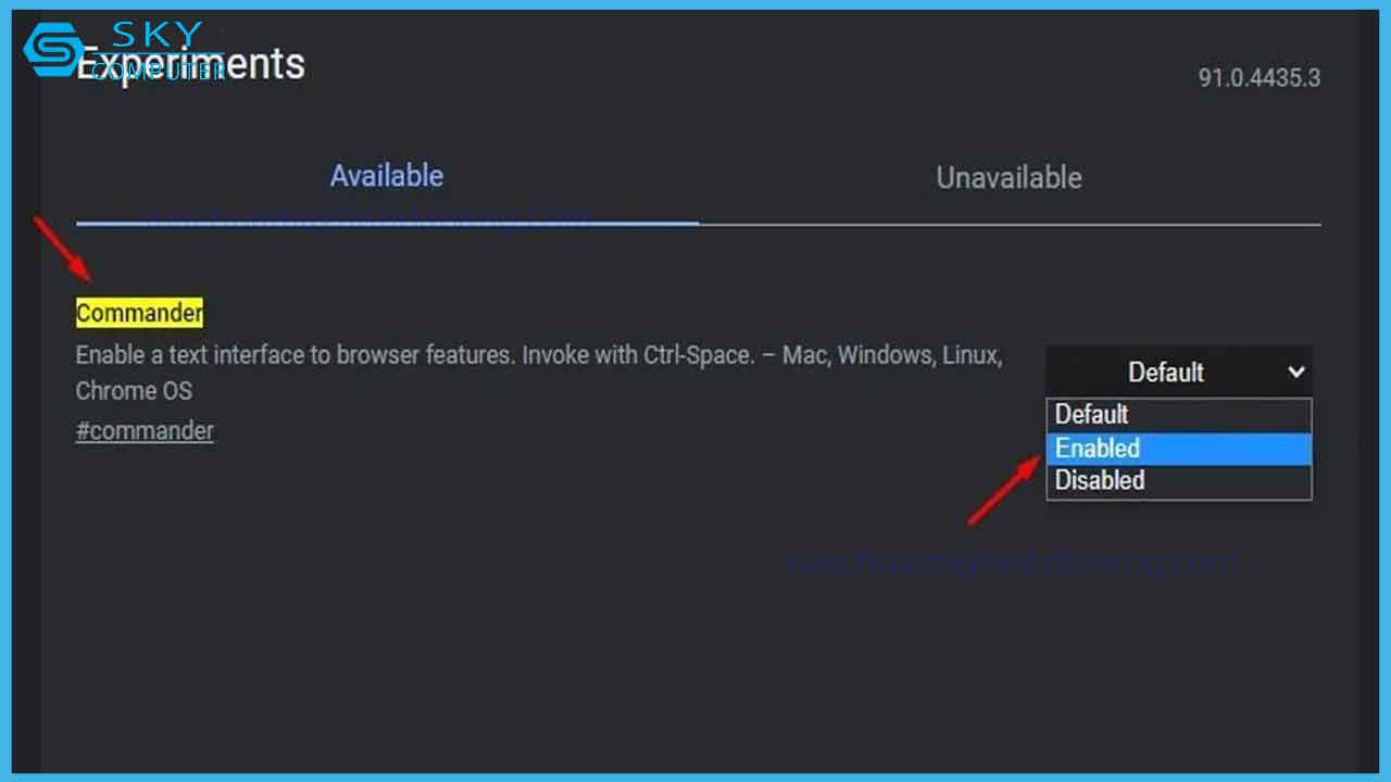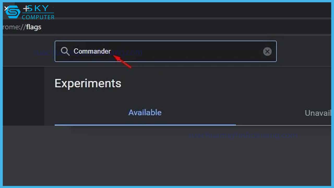 Bước 4: Gõ từ khóa Commander vào thanh tìm kiếm trong trang.Bước 5: Tìm flag Commander và chọn Enable từ menu thả xuống. Sau khi hoàn tất, nhấn vào nút Relaunch.Bước 6: Sau khi khởi động lại, sử dụng phím tắt Ctrl + Space để khởi chạy Commander.