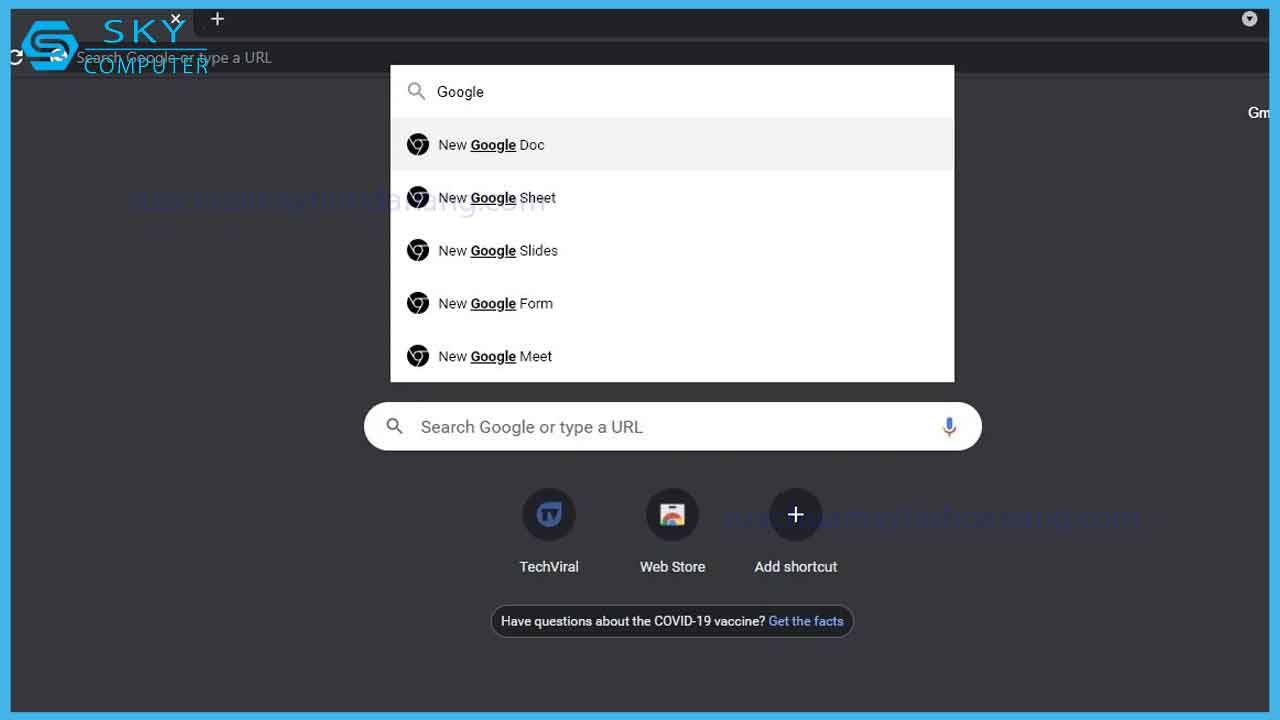 Bước 7: Bạn sẽ thấy một hộp tìm kiếm mới trong Chrome. Chỉ cần gõ bàn phím để xem tất cả các lệnh liên quan. Bạn có thể sử dụng các lệnh như Settings, Google Sheet, Meet, Form, Docs,… và truy cập các cài đặt đó ngay từ kết quả tìm kiếm.