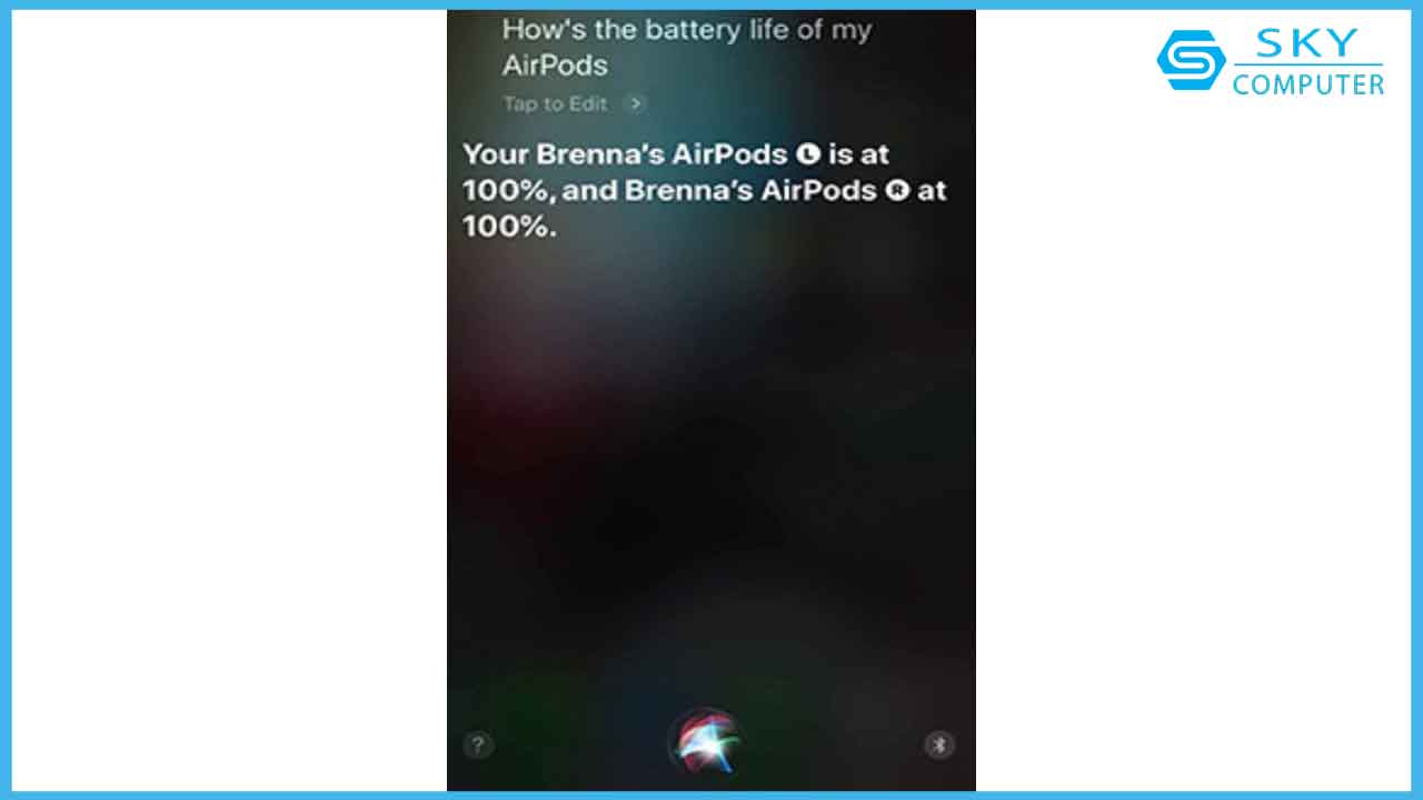 Bước 2: Tiếp theo bạn nói câu lệnh tiếp theo “ What’s Airpods battery level?” hoặc cũng có thể dùng câu lệnh “Airpods battery”.