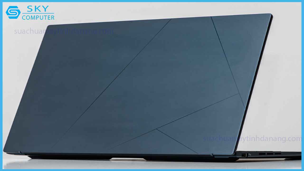 Tương đồng với mẫu laptop Acer, laptop Asus Zenbook 14 OLED có thiết kế đơn giản nhưng không kém phần tinh tế. Hoạ tiết Asus được cách điệu trang trí trên nắp máy với phần vỏi được bo tròn tạo cảm giác mềm mại. Tổng thể được thiết kế liền mạch với kiểu trục ở khoảng giữa vô cùng cứng cáp tránh tình trạng màn hình bị rung khi sử dụng. Các cổng được trang bị dọc hai bên đủ để kết nối với nhiều thiết bị ngoại vi. Ngoài ra, camera còn được tích hợp nắp che vật lí đảm bảo được tính riêng tư của người dùng.