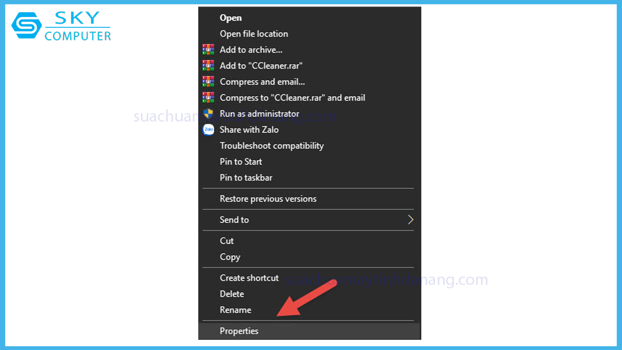 Bước 1: Chọn ứng dụng bị lỗi và nhấp chuột phải. Chọn Properties.