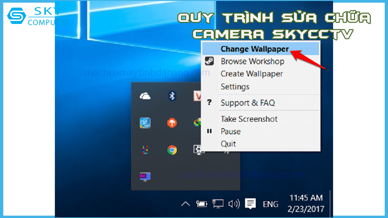 – Bước 1: Các bạn nhấn chuột phải vào icon phần mềm sau đó ấn vào “change wallpaper“.