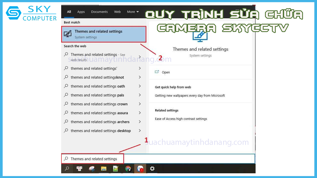 Bước 1: Tại mục tìm kiếm trên Win 10, nhập và chọn Themes and related settings.
