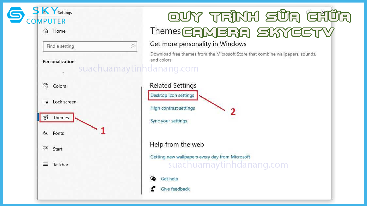 Bước 2: Chọn mục Themes ở bảng Setting vừa hiển thị, kéo xuống và chọn Desktop icon settings.