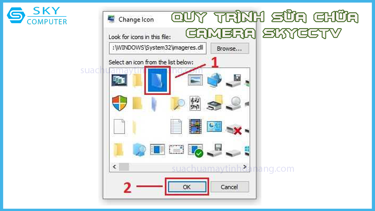 Bước 3: Chọn icon thay thế, chọn OK và tiếp tục chọn OK là xong.