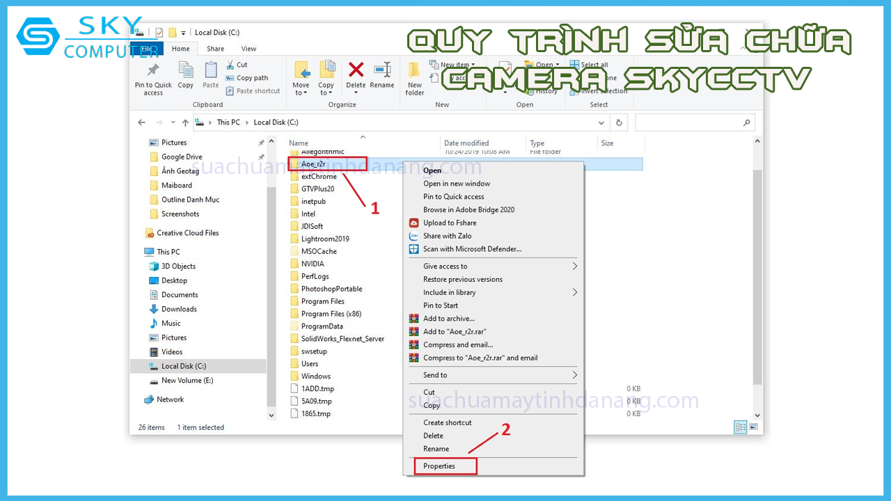 Bước 1: Đầu tiên click chuột phải, chọn thư mục cần đổi biểu tượng. Sau đó nhấn chuột phải rồi chọn “Properties”.