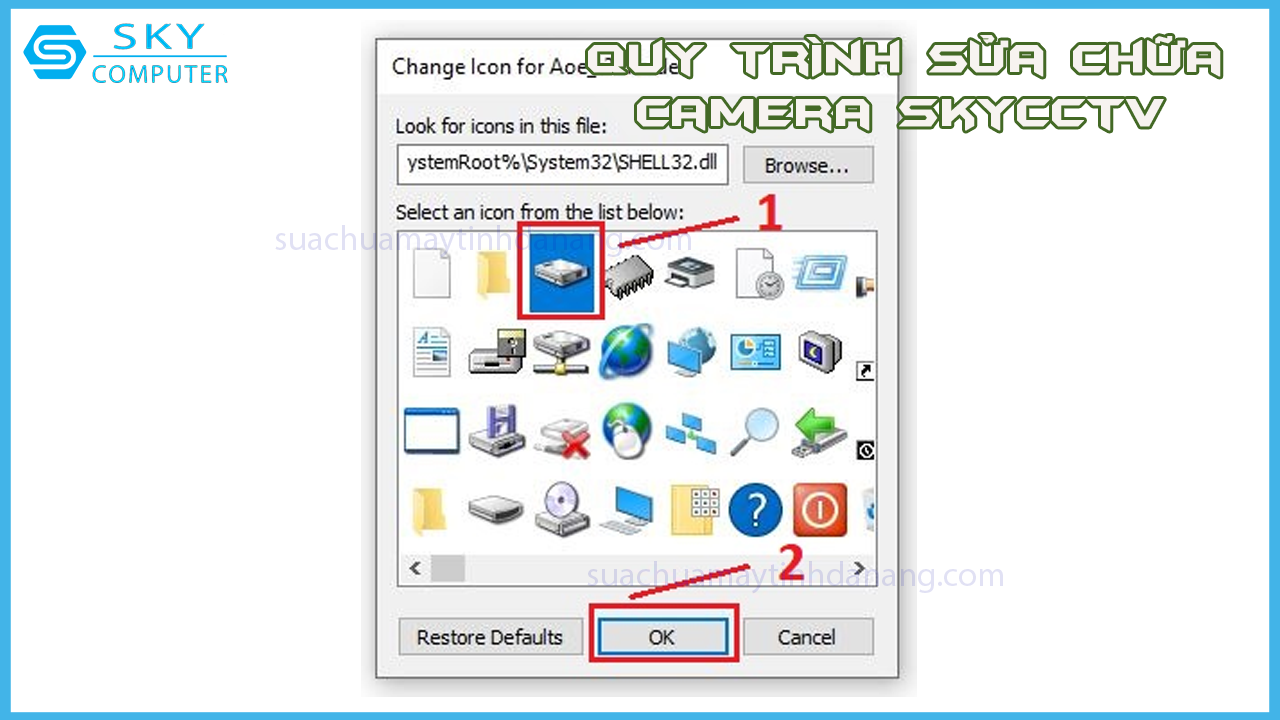 Bước 4: Chọn icon thay thế, bấm OK và bấm tiếp OK là xong.