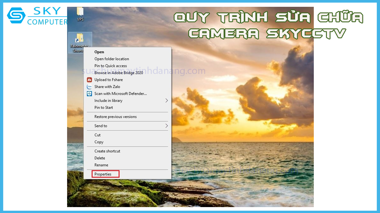 Bước 1: Ngoài màn hình desktop nhấn chuột phải vào tập tin muốn đổi icon và chọn Properties.
