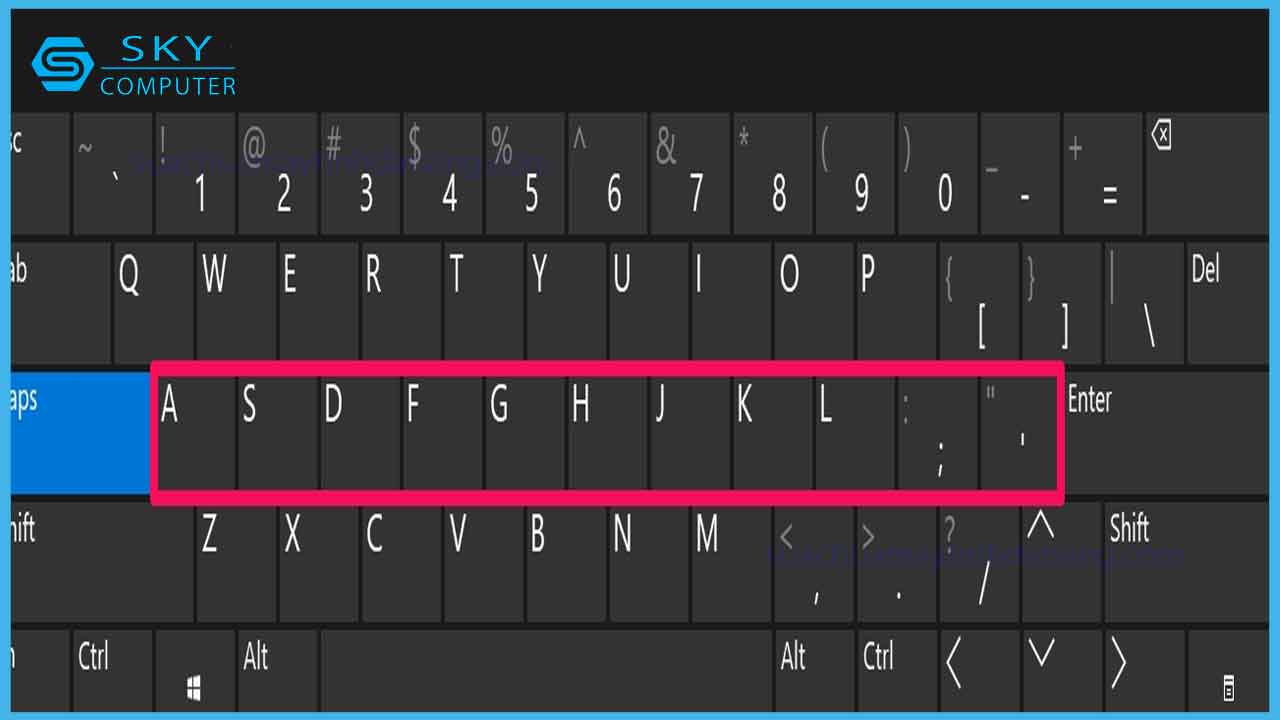 - Ngón út đặt ở phím A và điều khiển các phím: Q, A, Z, 1, ‘ và các phím chức năng như Tab, Caps lock, Shift.