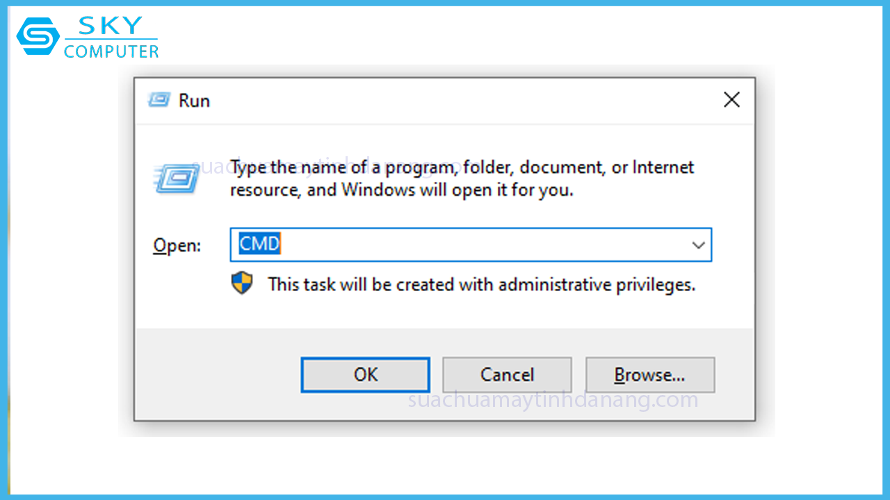 Bước 1: Nhấn tổ hợp phím Windows + R để mở cửa sổ Run. Sau đó, nhập từ khóa CMD rồi nhấn OK để mở cửa sổ Command Prompt.