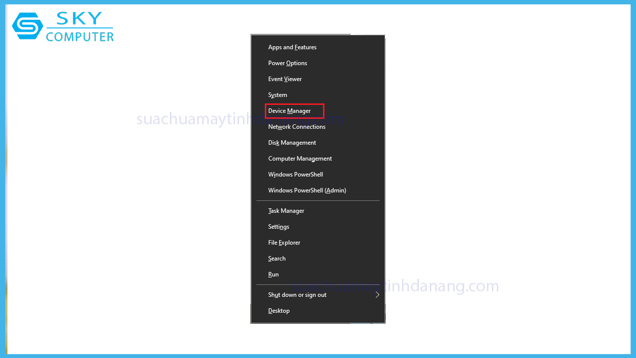 Bước 1: Trước hết chúng ta nhấn tổ hợp phím Windows + X sau đó chọn tiếp Device Manager.