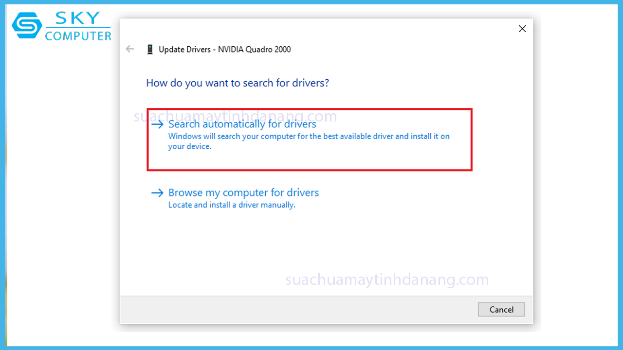 Bước 3: Chuyển sang giao diện cửa sổ tiếp theo, người dùng tiếp tục nhấn chọn vào Search Automatically for drivers. Chờ quá trình hệ thống tự động tải và cập nhật bản mới cho driver card màn hình NVIDIA.