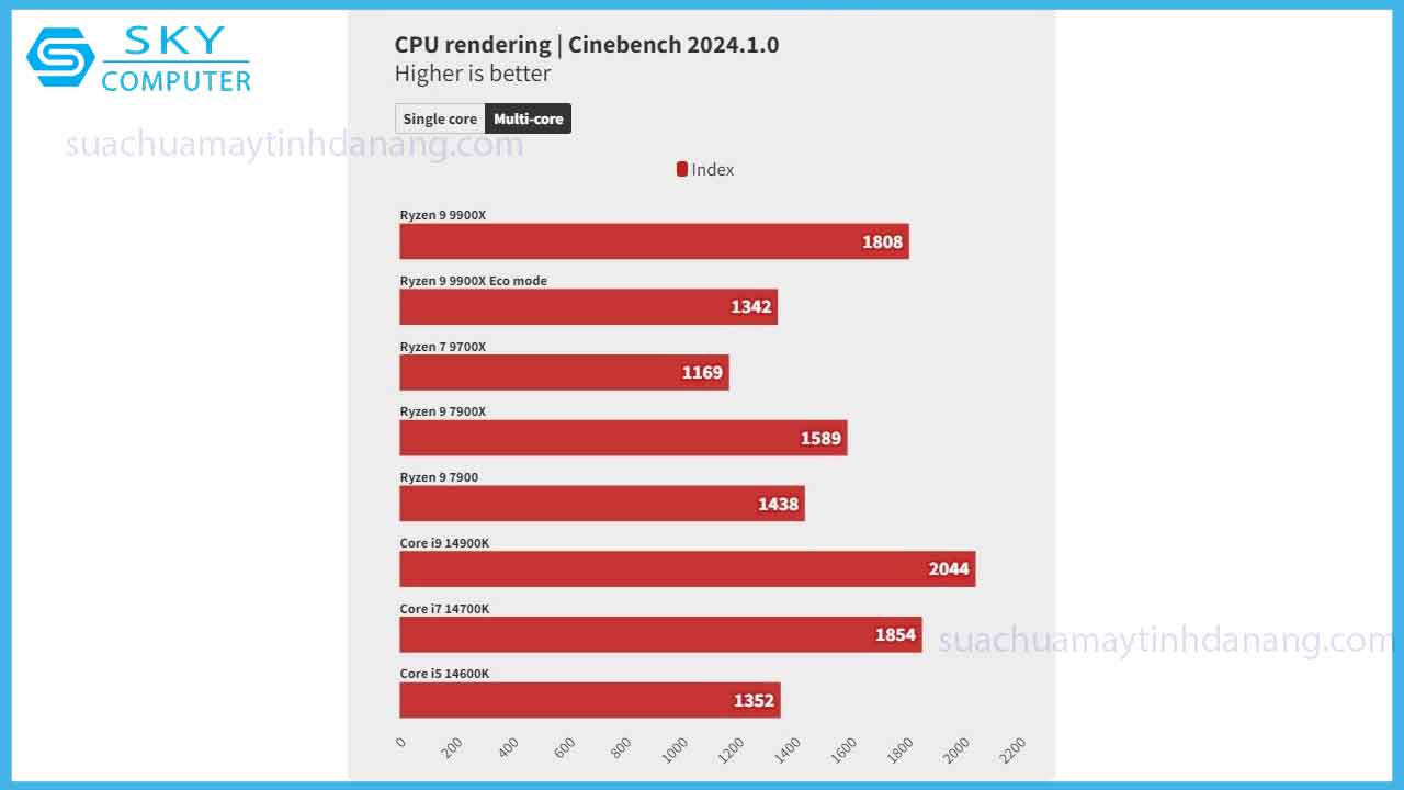 Trên thị trường hiện nay, có rất nhiều dòng chip khác nhau cạnh tranh về hiệu năng và giá thành sản phẩm. AMD Ryzen 9 9900X nổi lên giữa các sản phẩm cùng phân khúc với hiệu suất đáng gờm có mức tiêu thụ điện năng, tỏa nhiệt và một vài thông số đáng cân nhắc khác được chú trọng phát triển hơn các đời cũ. Trong các dòng chip thế hệ, 13, 14 thì Ryzen 9 đang có nhiều lợi thế về tính năng mà đối thủ cùng phân khúc Intel chưa được tối ưu hoá bằng. Cùng sửa máy tính quận Liên Chiểu Review AMD Ryzen 9 9900X: Vượt trội so với Core i9 – 14900K?